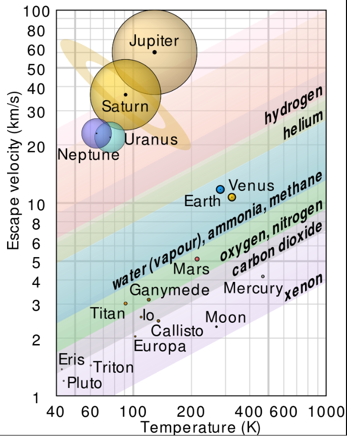 Mars, on the other hand, cannot hold onto water, ammonia, methane. These are the three common chemicals that store hydrogen in the solar system, aside from hydrogen gas, which only the gas giants can retain. This dooms Mars to lose water if water gets into the atmosphere. And it means we have trouble finding hydrogen on Mars. But we need hydrogen, right?