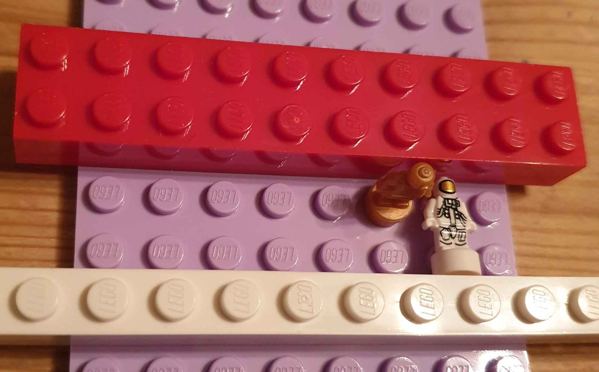 Assuming that Starship ends up being our delivery system, all equipment delivered to Mars must have a maximum diameter less than the cargo bay of Starship. Using the 30 cm stud definition, this makes Starship 30 studs in diameter; using the 33 cm definition, 27 studs in diameter. This is quite large in terms of Lego rockets! Furthermore, Starship is estimated to be 50 m tall, which equates to 167 or 150 studs tall-- 140 or 125 bricks tall. In real terms, building a Starship out of Lego at these scales is prohibitive in terms of numbers of bricks used during construction.